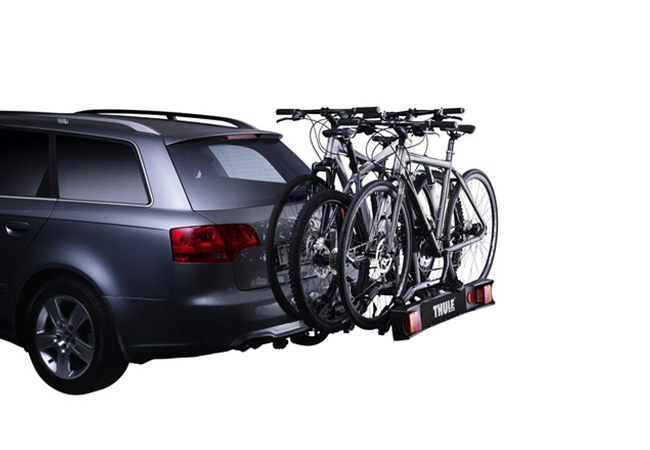 Lihtne kallutatav jalgrattahoidik (3 jalgratta jaoks). Käega juhitav kallutus tagab juurdepääsu pakiruumile ka siis, kui jalgrattad on hoidikule kinnitatud.Nutikas kinniti, mis sobib enamikule haakekonksudele.Jalgrattad kinnitatakse oma kohale pehmete rihmadega.Hoidiku saab lukustada haakekonksu külge tarviku Thule Lock 957 abil.